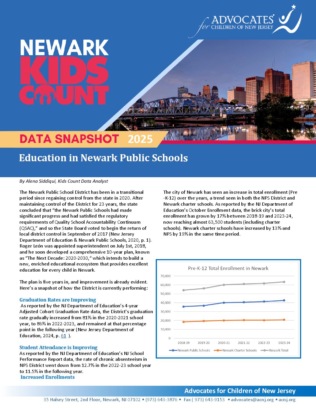 Newark Kids Count Data Snapshot: Education Status of The Newark Public School District